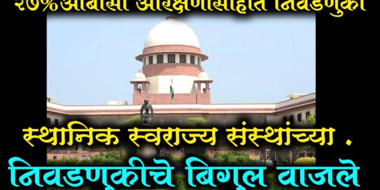 महाराष्ट्रातील स्थानिक स्वराज्य संस्थांच्या निवडणुकांच्या संदर्भात आज सर्वोच्च न्यायालयाने एक अत्यंत महत्त्वपूर्ण आणि ऐतिहासिक निर्णय दिला आहे. अनेक महिन्यांपासून रखडलेल्या महानगरपालिका, नगरपालिका, नगरपंचायत, जिल्हा परिषद व पंचायत समित्यांच्या निवडणुकांचा मार्ग अखेर मोकळा झाला आहे. सर्वोच्च न्यायालयाने २७ टक्के OBC आरक्षणाला हिरवा कंदील दिला असून, नव्याने निश्चित केलेल्या वॉर्ड संरचनेनुसार निवडणुका घेण्यास परवानगी दिली आहे.